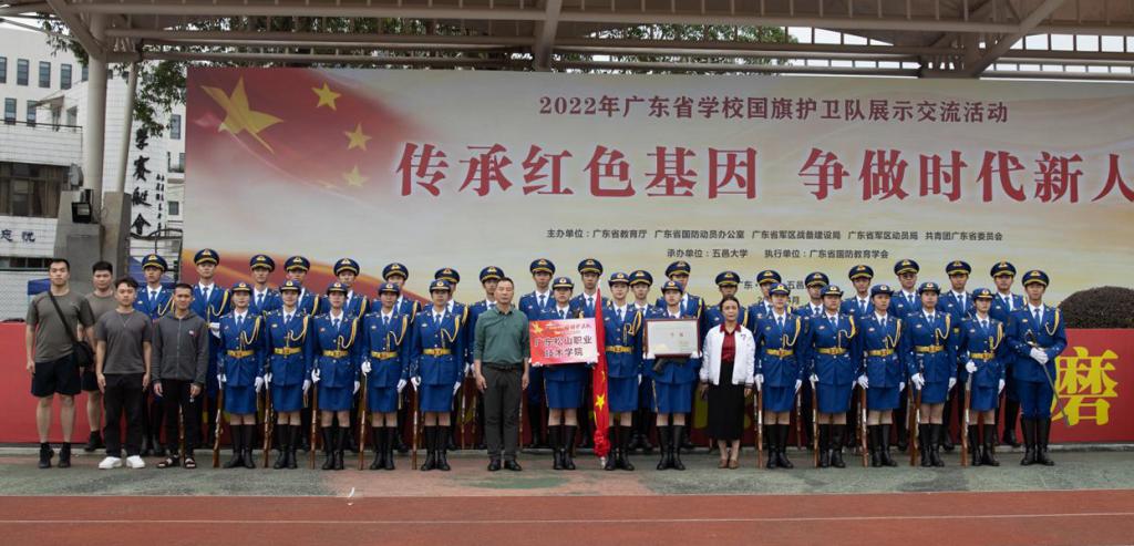 4月24日至26日,2022年广东省学校国旗护卫队展示交流活动在五邑大学顺利举行。来自全省109所学校的学生代表队相聚于此。我校国旗护卫队荣获本次大赛二等奖。