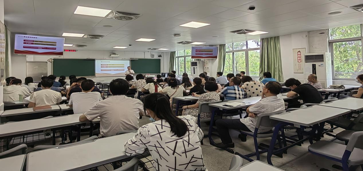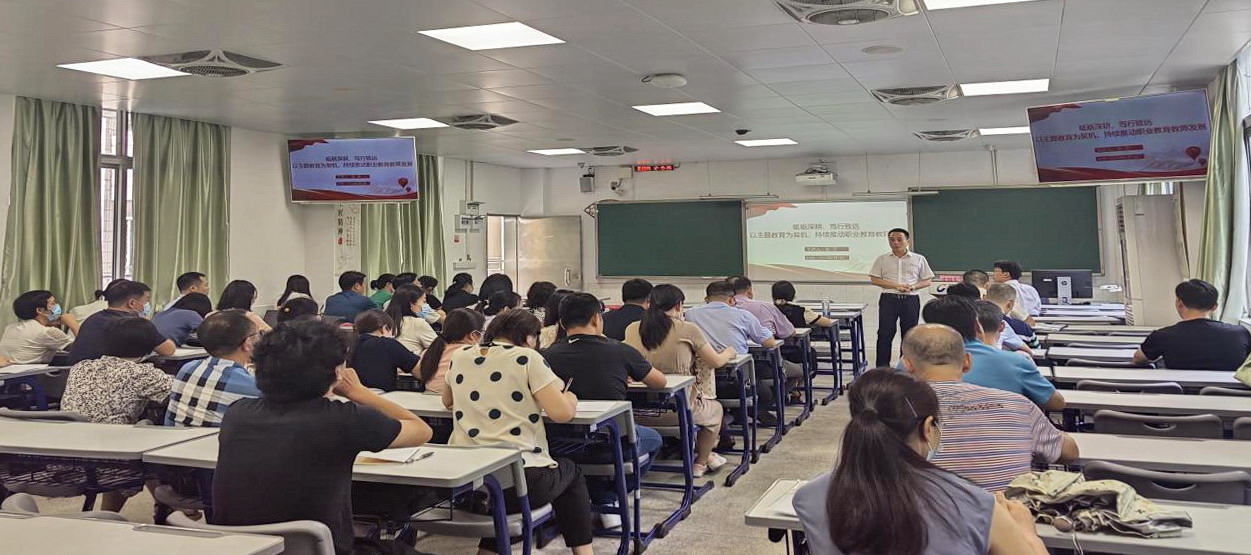 为深入学习贯彻习近平新时代中国特色社会主义思想,推进主题教育“学思想、强党性、重实践、建新功”总要求在基层走深走实,6月1日下午,副校长张志以《砥砺深耕、笃行致远,以主题教育为契机,持续推动职业教育教师发展》为题,为人力资源部党支部、教务部党支部、图书馆党支部、信息与现代教育技术中心党支部、实训中心党支部以及外语商务学院党总支全体教师党员讲授专题党课。