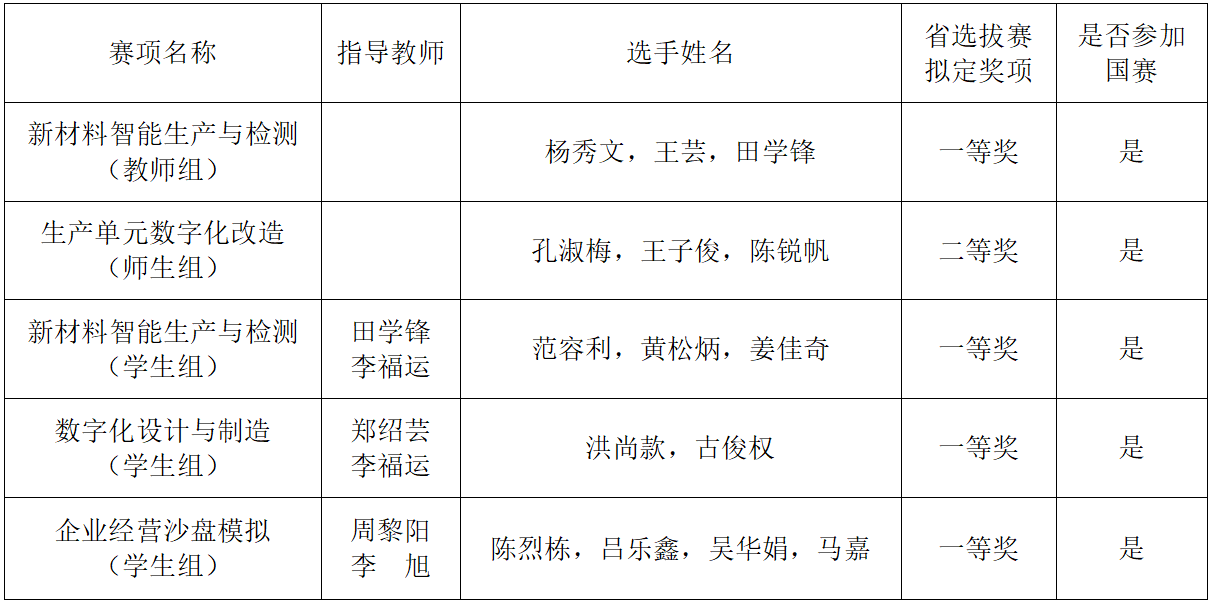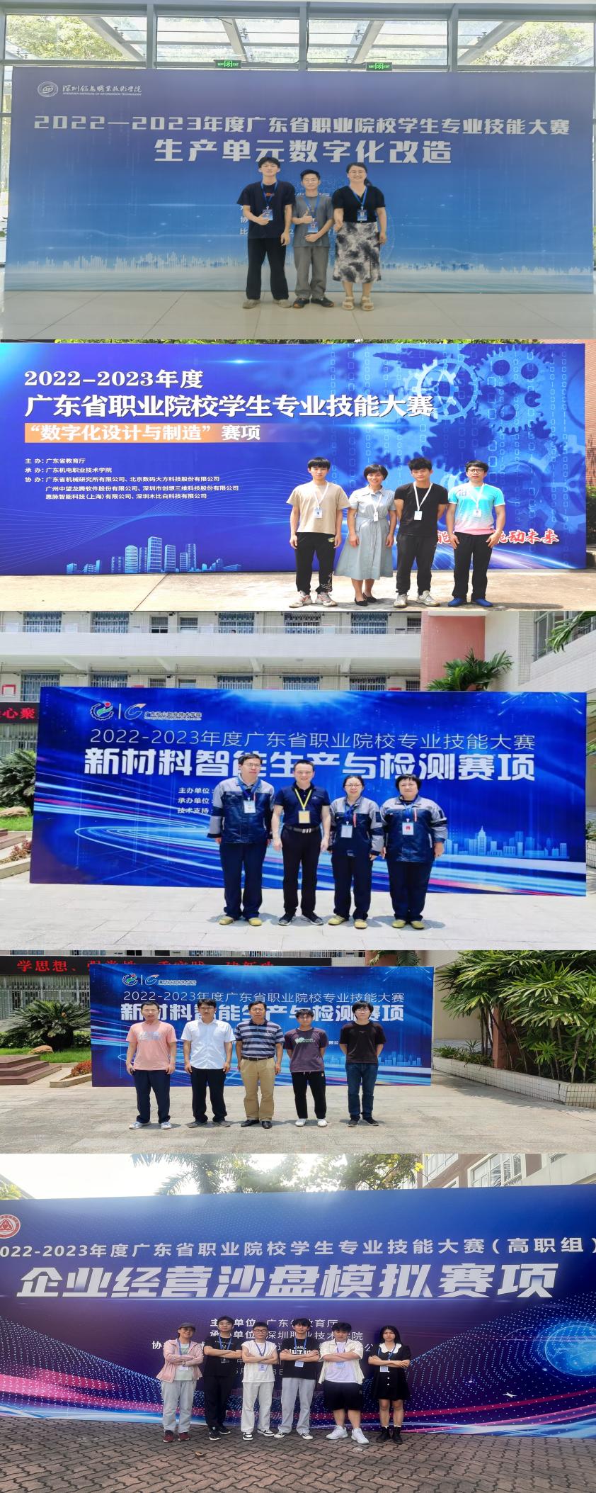 2022-2023年度广东省职业院校技能大赛学生专业技能竞赛基本结束,通过目前竞赛系统公布的比赛成绩得知,我校拟定获得一等奖8项、二等奖15项、三等奖60项,其中五个赛项将代表广东省参加2023年全国职业院校技能大赛,名单如下表: