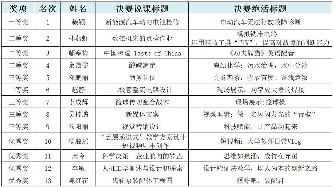 2023年青年教师教学大赛获奖名单