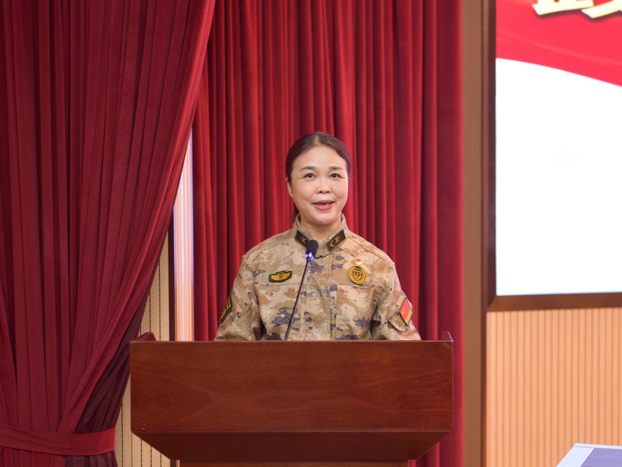 报告会上,潘建美以“践行初心为国防,乐当高校‘兵妈妈’”为主题,从“十五年践行初心,以尽心尽力、尽职尽责的坚守助力学生,以真心付出、真情奉献的呵护点燃信念,以恒心不改、恒志进取的执着守正创新”三个方面讲述了自己在平凡的岗位上追求理想、建功立业、默默奉献的事迹和经历,分享了宝贵收获,把一个个平凡而真切、朴素而鲜活的形象展现在我们面前。