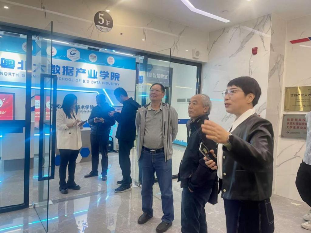 座谈会后,计算机与信息工程学院院长王玉贤带领黄轩一行参观了粤北大数据产业学院的“校中园”基地。