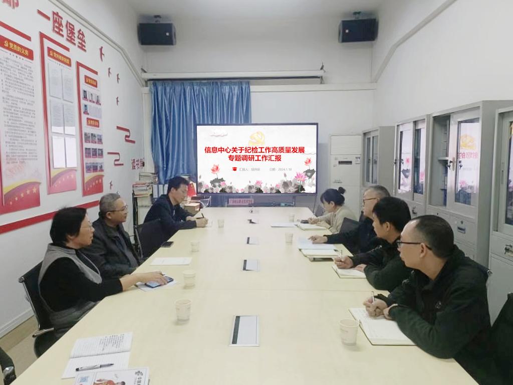为深入推进全面从严治党向纵深发展,推动各单位加强党风廉政建设,做好风险防控工作,完善内部治理,1月18日上午,学校纪委书记郭浩东一行到信息中心开展纪检工作高质量发展专题调研工作,学校纪委副书记、纪检室主任郑春玲,纪检室副主任谭爱红、副科级纪检员曾融、信息中心党政班子成员、内设科室负责人和纪检委员一同参加调研。