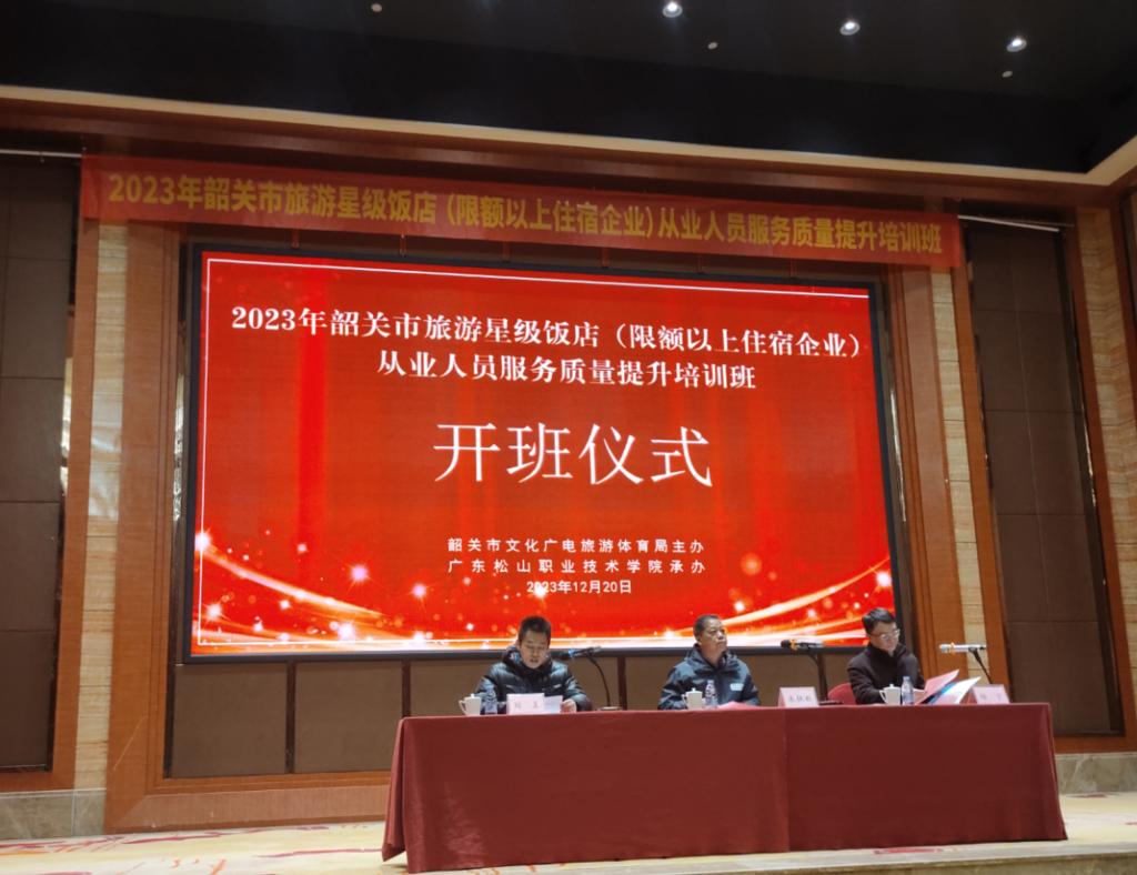 为进一步提升韶关市旅游星级饭店从业人员服务质量和业务水平,塑造良好的酒店从业人员形象,引导学员学习新知识,掌握新技能,积极投身酒店行业,助力韶关市酒店行业高质量发展。12月20日至22日,由韶关市文化广电旅游体育局(简称“市文广旅体局”)主办,我校外语商务学院承办的“2023年韶关市旅游星级饭店从业人员服务质量培训班”在韶关汇展酒店成功举行。
