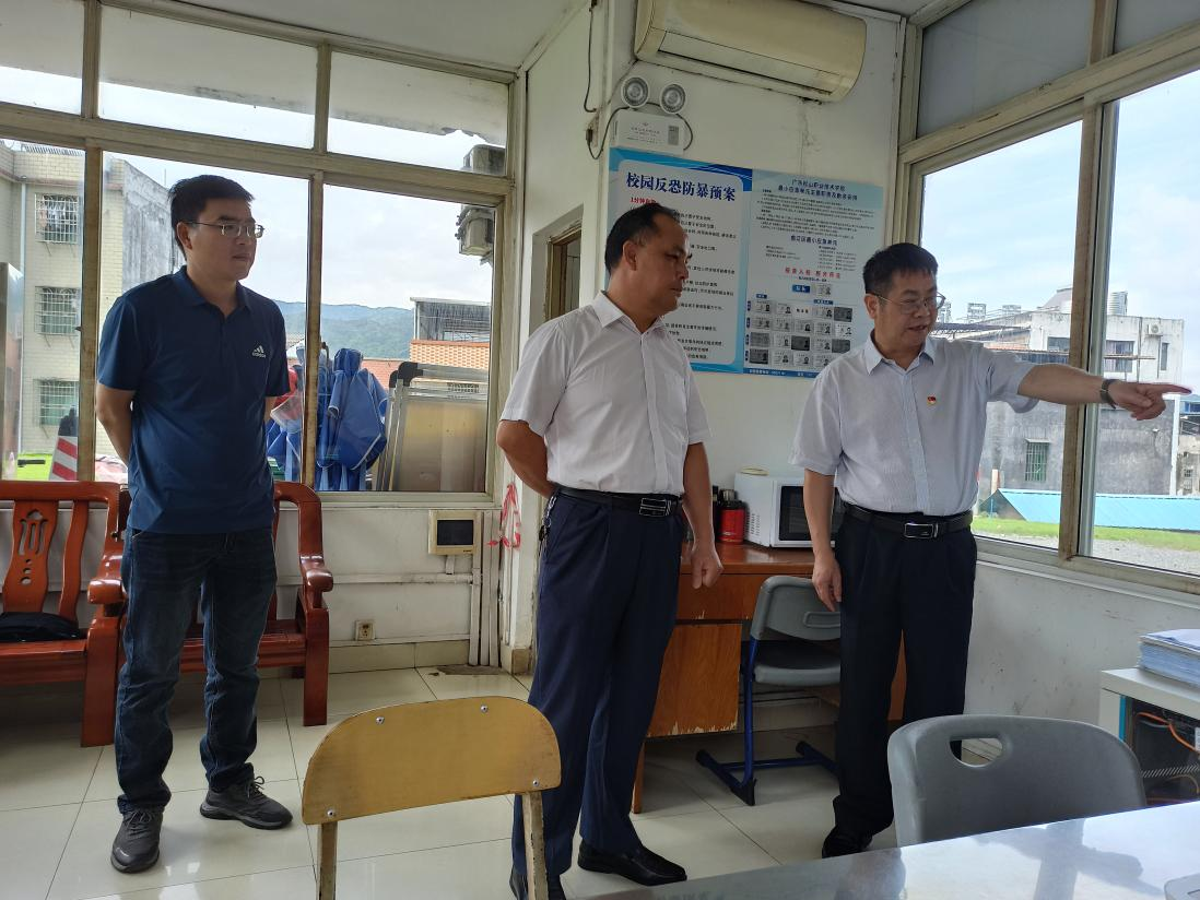 会前,方迎生一行到第一治安执勤岗、松实楼后山滑坡治理点、校园监控中心等实地察看,调研中边走边详细询问并一一指导。