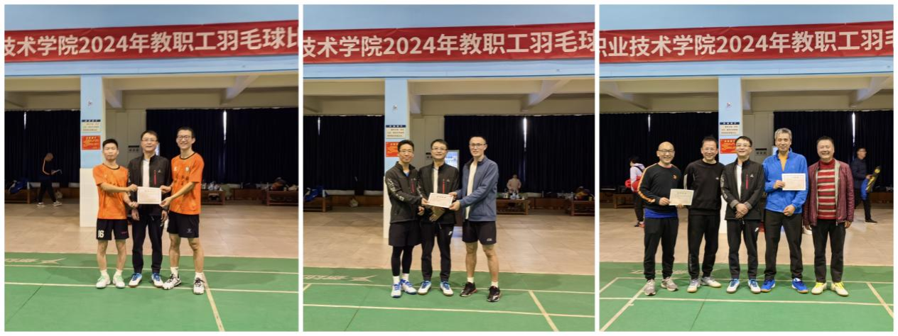 比赛后,杨宇和工会副主席胡贵平分别为男双、女双获奖队伍颁奖,并与全体参赛队员合影留念。