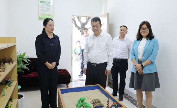 会前,在车小真的陪同下,方迎生一行参观了该校心理健康中心、学生食堂、附属幼儿园等场所。