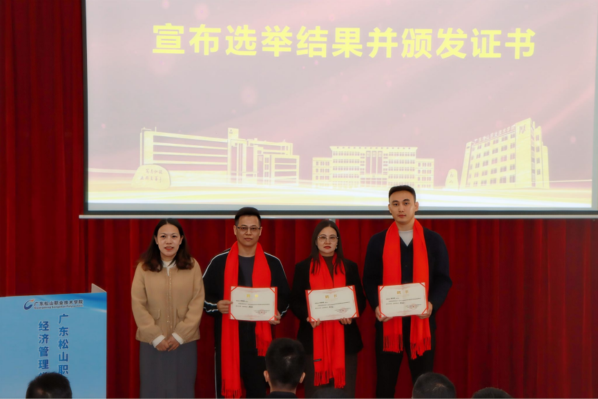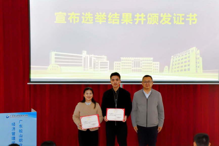 会议审议通过《广东松山职业技术学院校友会经济管理学院分会管理办法》《广东松山职业技术学院校友会经济管理学院分会监督工作办法》,选举产生了分会第一届理事会成员、监事会成员以及会长、副会长、秘书长、监事长,并颁发聘书。新当选会长、经济管理学院党总支书记陈斌珠以及执行会长吴炜霖校友发言。