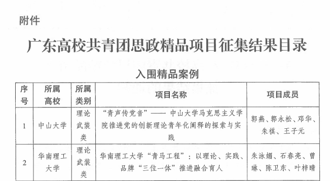 据悉,本次活动共收到来自全省高校团委的申报项目206项。经过严格的项目资格审查、专家评审、公示及信息复核等环节,最终评选出精品案例项目27项、优秀案例项目45项。我校项目在众多优秀作品中脱颖而出,成为27项精品案例之一,也是其中仅有的两所高职院校代表之一,与中山大学、华南理工大学等知名本科院校同列榜单,彰显了我校在思想政治引领与传统文化传承创新方面的扎实工作和突出成果。