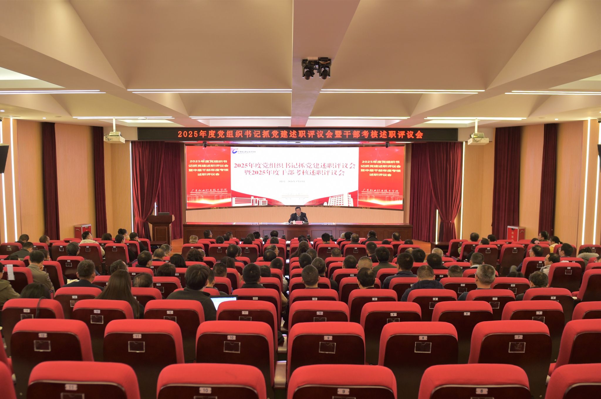 1月13日,学校在学术报告厅宽C101召开2025年度党组织书记抓基层党建述职评议会暨中层干部年度述职评议会。学校党委书记方迎生出席会议并讲话,全体校领导出席会议。学校中层以上干部、教职工代表共110余人参加会议。