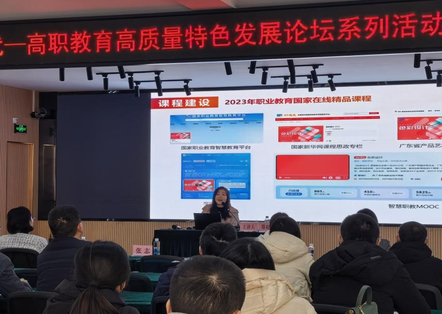 广东机电职业技术学院设计学院副院长、南粤优秀教师、广东省技术能手、广东五四青年奖章获得者蔡晓红教授分享了《色彩设计》国家精品在线开放课程以及教材的建设经验;计算机应用学院副院长、南粤优秀教师陈捷副教授分享了《信息技术》国家精品在线开放课程以及教材的建设经验;物流学院现代物流专业带头人、南粤优秀教师殷华副教授分享了《快递运营事务》国家精品在线开放课程建设经验。三位教授从课程定位、资源开发、实施策略到成效评估四个层面,全面解析了课程建设中的共性难点与个性挑战。讲座分享结束后,我校教师就课程和教材建设碰到的问题和难点与三位专家进行了深入交流研讨。